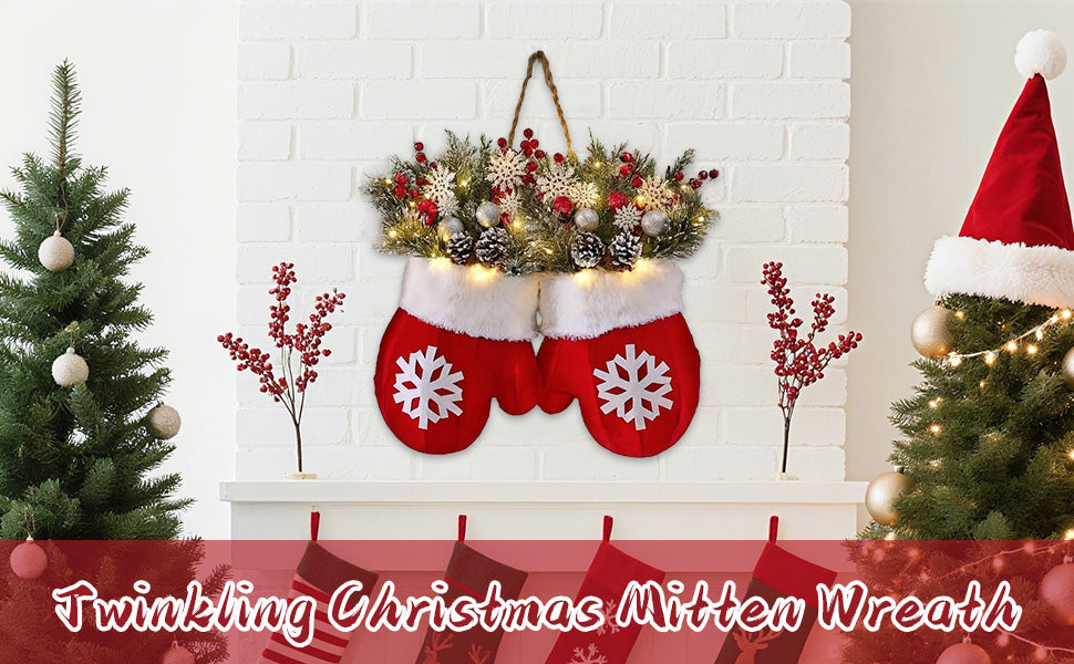 Twinkling Christmas Mitten Wreath